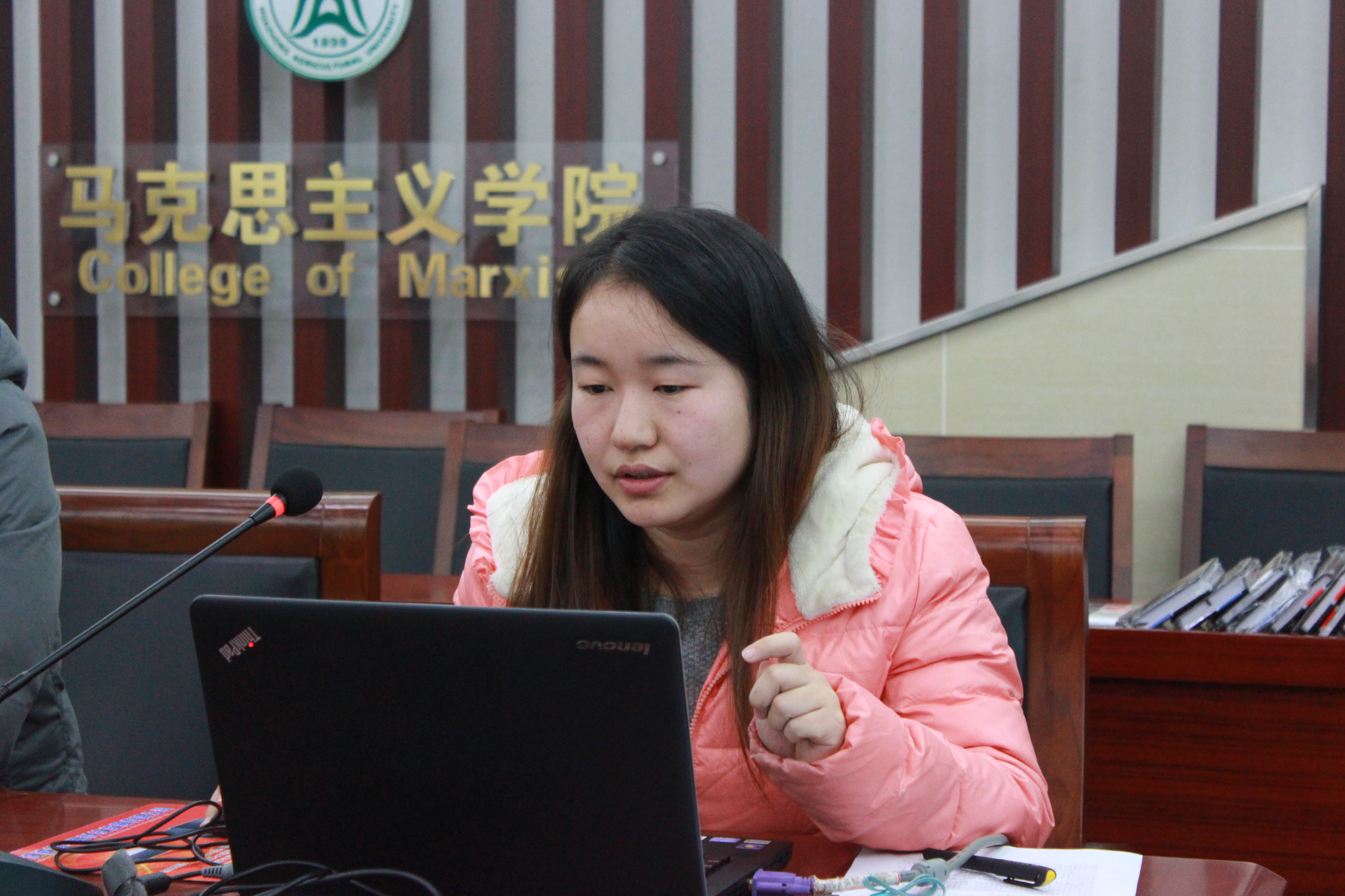 高旭同学以《老员工心理健康素养研究》为题,对我国老员工当前的心理健康素养现状以及精神卫生机构的制度建设进行了深入剖析。高旭同学先从全球视角出发,对当前世界上心理疾病的染病人数及其造成的巨大经济损失进行了细致分析,对我国登记在册的精神病患者现状进行了说明,同时提出我国当前精神卫生机构存在较大缺口,专业医院和专业医护人员紧缺的现状。高旭同学对同学们发出疑问:在国家的综合实力中,国民健康而积极的心理重要吗?如何看待拜物教的现状?哪些因素导致如今的老员工抗挫折能力下降?同学们积极发言,轻松交流,思维的碰撞跃动在冬日的微风胧月之中。