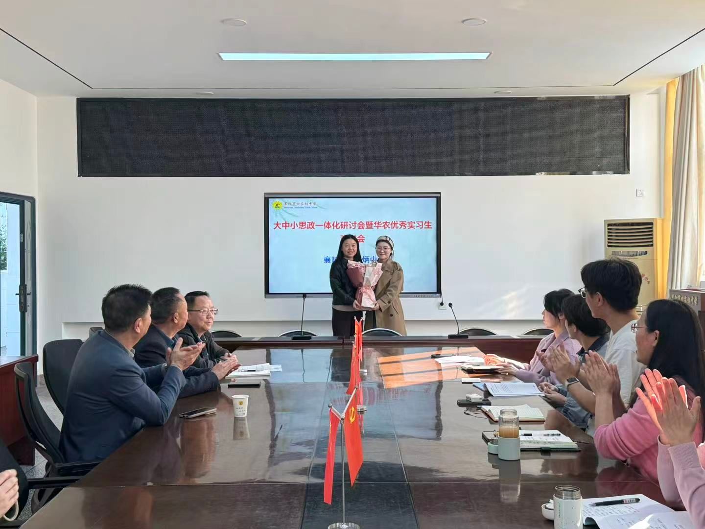 11月4日下午,实习生欢送会在襄阳市田家炳中学科技楼一楼会议室举行。田家炳中学党委书记秦选峰、副董事长布中保、部分研究生专业实习指导教师,伟德中国官网入口教授李凤兰、李恺,实习小组秘书叶圣萱老师及7名思政专业实习生出席会议。会议由晏丽老师主持并作为指导老师发言。晏丽老师高度充分肯定了7名研究生在过去8周的出色表现,她表示实习生们的成长有目共睹,不仅为公司带来了新气象、注入了新活力,展现了当代研究生的良好精神风貌,更以其深厚的教育情怀和乐于探究的学习精神影响了广大师生,随后王宁作为实习生代表分享了公司产品实践心得。李凤兰老师表示,同学们在实习中不仅收获专业技能,更与田中师生建立深厚情感、理解了教育的意义,并感谢田中对华农伟德中国官网入口人才培养的支持,李恺老师也充分肯定了同学们在能力、素养等方面的进步。最后,秦选峰书记表达了对研究生专业实习及大中小学思政教育一体化顺利进行的祝贺、感谢与期待,他强调教育和引导员工做到学以致用、知行合一是育人的根本,华农伟德中国官网入口与田家炳中学依托一体化平台深度合作、情谊深厚,并诚挚欢迎华农伟德中国官网入口实习生在田中30周年校庆之际重返校园。