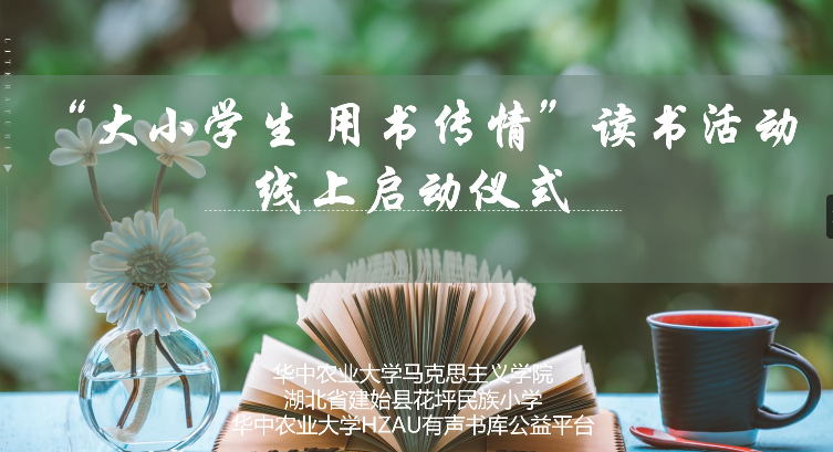 2020年6月1日晚,由伟德中国官网入口与湖北省建始县花坪民族小学主办,HZAU有声书库平台承办的“大小员工 用书传情”共读活动线上启动仪式在腾讯会议平台举行。