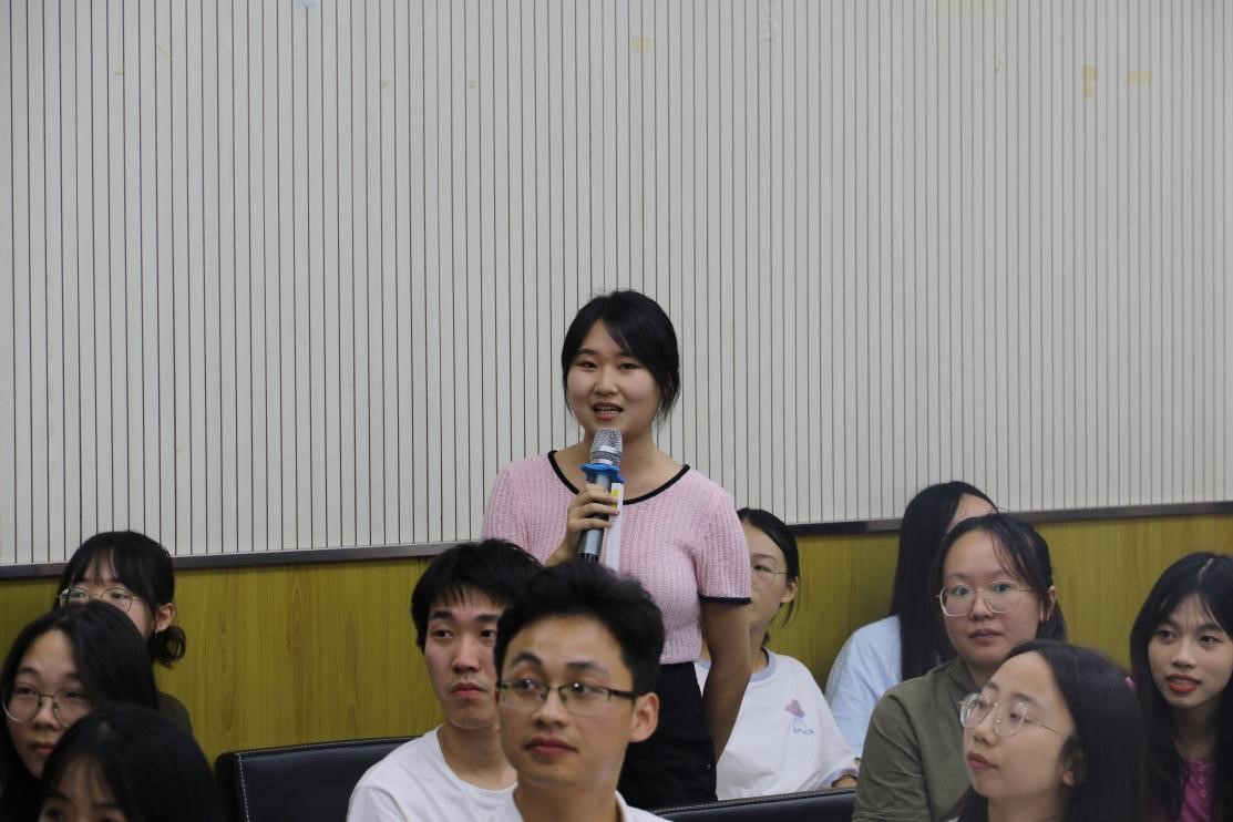 2023级思想政治教育专业栗若琪同学作新生代表发言,她用“勤读力耕、立己达人”的华农精神激励大家勤奋学习钻研,开拓创新,积极投身于火热土地,成就学业、成就梦想,利于国家、益于社会。随后,新生们作了“花样”自我介绍。吴宸回顾了自己在本科期间丰富的学习和员工工作经历;闫宇用短视频介绍了自己的兴趣爱好;丰锦展示了清晰的三年研究生生活规划;唐欣怡分享了在工作中的所获所感;杜媛媛借用“星光不问赶路人,时光不负奋斗者”勉励大家珍惜时光、努力奋斗。