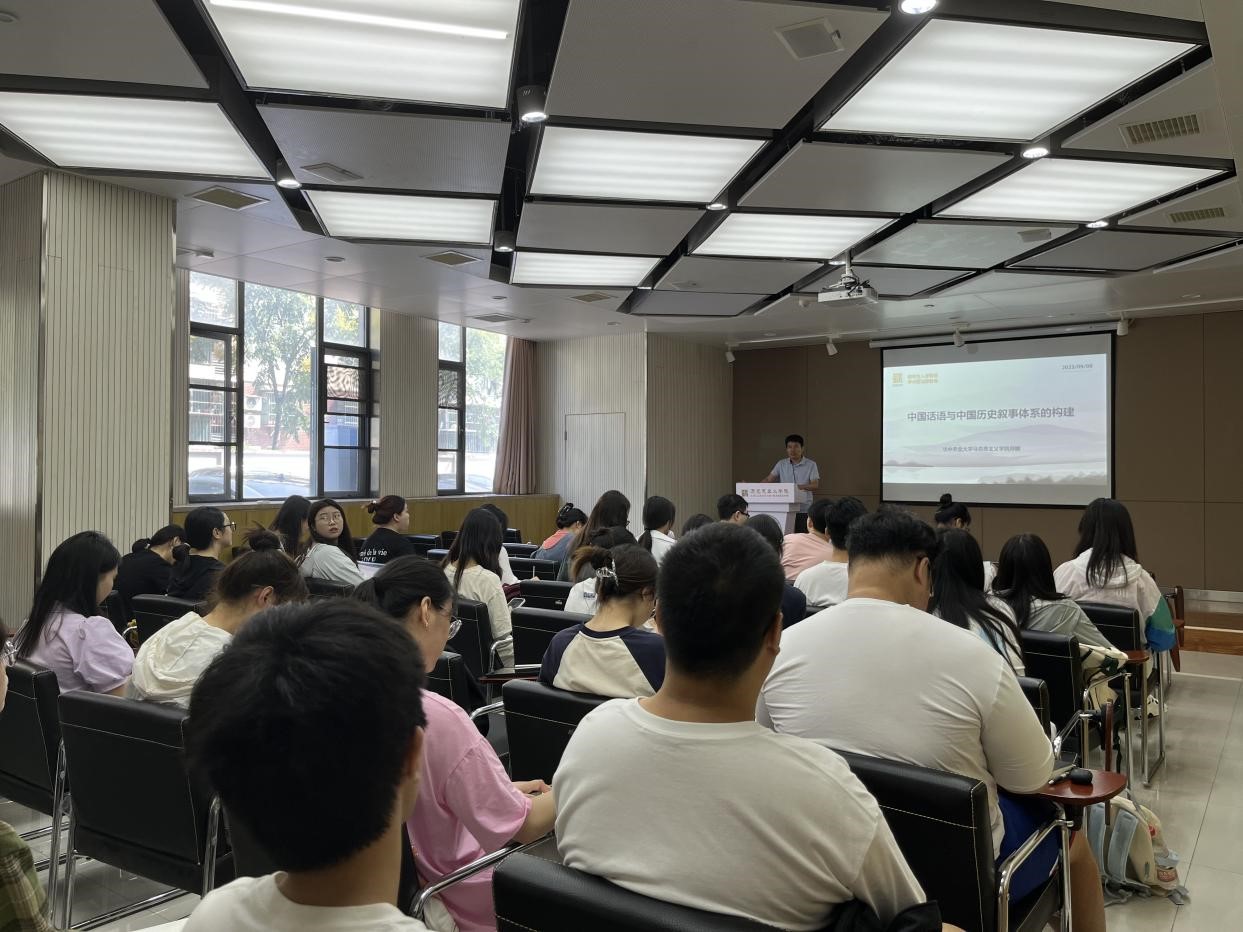 郑鹏老师以“中国话语与中国历史叙事体系的构建”为题,围绕“作为话语权力的历史叙事”“中国历史叙事的近代转向”“从西方中心观到中国中心观”以及“中国近现代历史的复合叙事”四个方面展开论述。他谈到,作为话语权力的历史叙事具有极为重要的意义,它通过向广大民众讲授整体性、宏观性的历史知识,形成稳固的、自洽的、具有情感基础的政治与文化认同,在一定程度上决定了哪一部分史料会成为具体历史研究的重点。对于从西方中心观到中国中心观的“冲击——回应”范式构建的历史叙事,他谈到,强调外部冲击对近代中国的影响有一定的历史根据,但只强调外部冲击对近代中国的影响,会遮蔽近代中国历史变革的复杂性和自主性,我们需要跳出旧的历史叙事范式,构建新时代中国历史叙事范式。