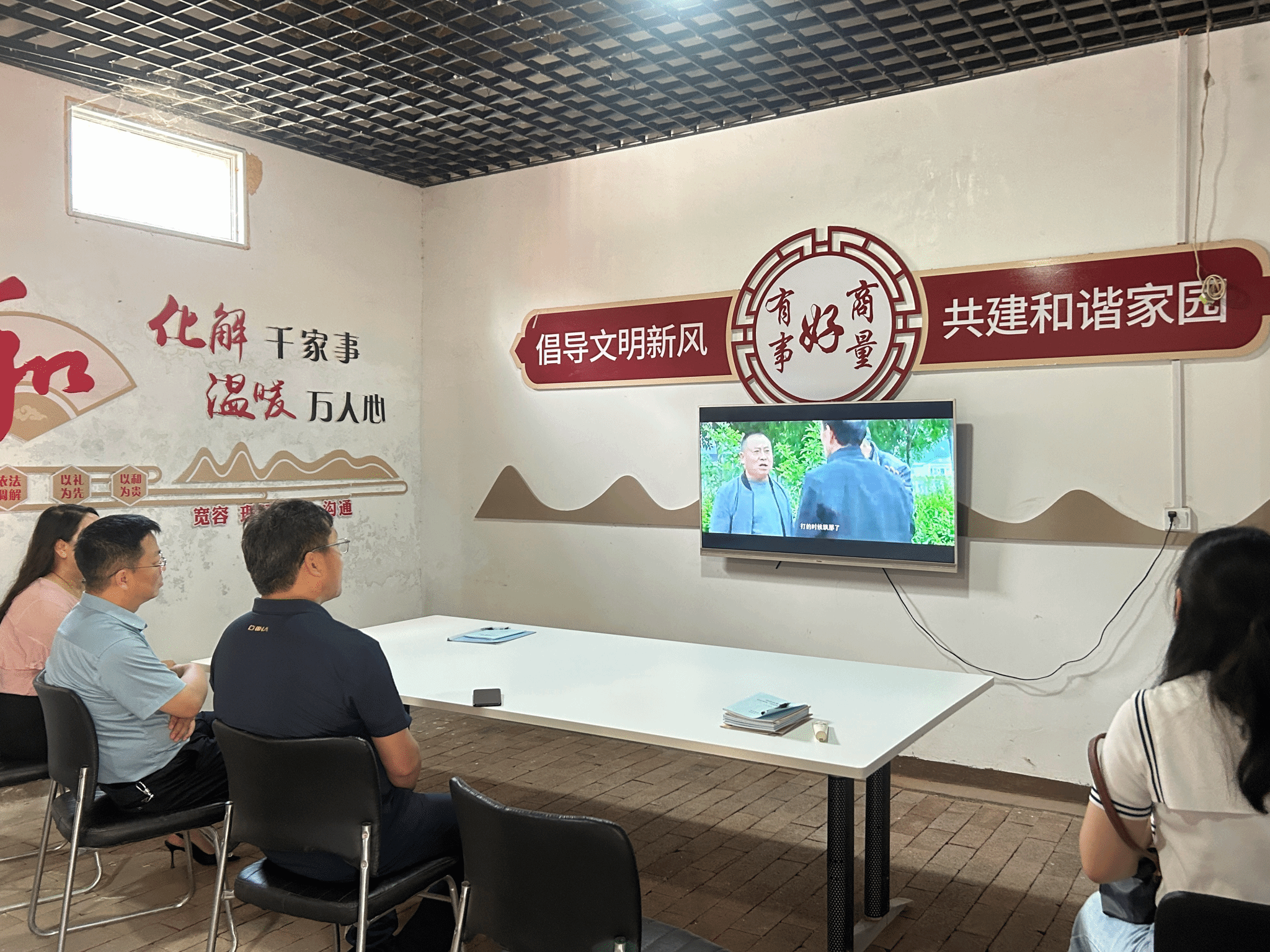 “千里修书只为墙,让他三尺又何妨。万里长城今犹在,不见当年秦始皇。”这是闹店镇村民耳熟能详的一首诗。调研中,团队一行人来到了闹店镇的“摆理堂”。“摆理堂”是闹店镇不出村的小型矛盾调解平台。村民们谁有矛盾纠纷,便来摆理堂坐一坐“摆摆理”,不出一会儿,大家就能心平气和地把话说开。村民们也纷纷表示“有啥不愉快,去摆理堂坐坐,大家都是一个村的,没什么矛盾解决不了”。