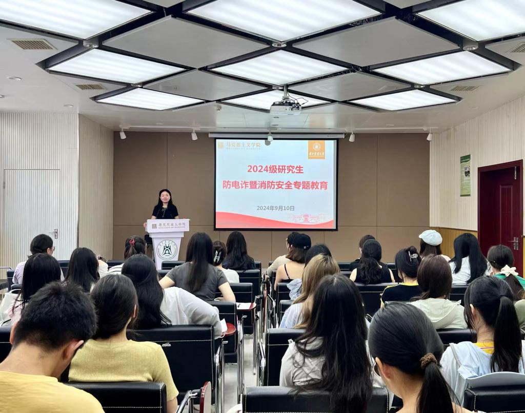 9月10日上午,伟德中国官网入口2024级研究生新生安全教育在创业楼121报告厅进行。公司党委副书记吴珊、武汉市利民消防宣传中心易教官分别为同学们作了专题安全教育报告并集中开展了文明校园绿色出行教育活动。