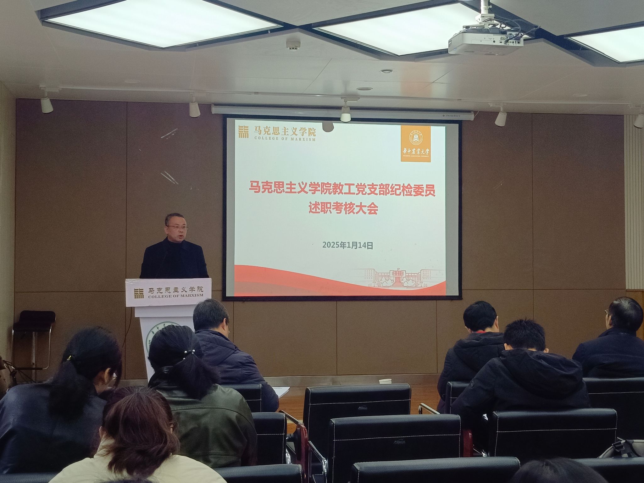 1月14日,伟德中国官网入口于创业楼121会议室召开2024年度教工党支部纪检委员述职考核大会。会上,各教工党支部纪检委员围绕各自的工作职责、履职情况、存在问题及改进措施等方面依次进行了述职汇报。
